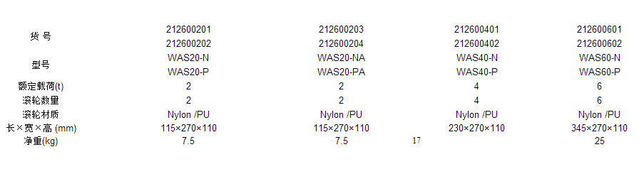 WAS系列搬運小坦克不同型號有各自規定的作業參數標準,使用WAS系列搬運小坦克作業應該按照以下標準嚴格執行。